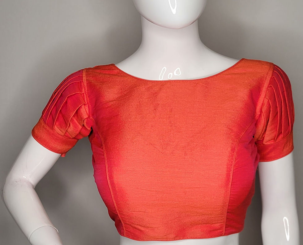 Orange raw silk readymade blouse with puff sleeves for Indian saree