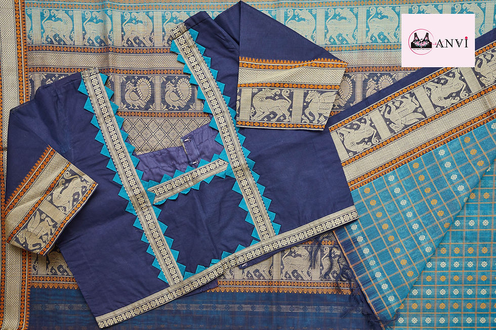 Navy Blue Kanchi cotton silk saree with ready to wear blouse