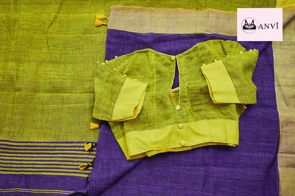 Bright Yellow silk Cotton saree with ready to wear blouse